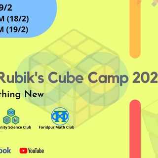 Infinity Rubik's Cube Camp-2021 will be held virtually for the enthusiasts.Classes will be held on 18/2/2021(12.01 pm) and 19/2/2021(11.01 am).In these two sessions,the mentor will teach the beginner method of solving a 3×3×3 rubik's cube.People of any class or any age interested are cordially invited to join these sessions.